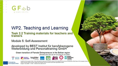 Modül , güneş, rüzgâr, hidroelektrik, jeotermal, biyoenerji ve okyanus enerjisi gibi yenilenebilir enerji türlerini tanıtarak bunların çevre dostu özelliklerini, avantajlarını ve sınırlamalarını açıklar. Kadın girişimciliğinin yeşil dönüşümdeki rolünü öne çıkaran modül, Balkan ülkelerindeki uygulamalardan örneklerle bu süreci somutlaştırır. Ayrıca katılımcılara yenilenebilir enerji kaynaklarını iş modellerine entegre etme, çevresel etkileri değerlendirme ve döngüsel ekonomi ilkeleriyle sürdürülebilir çözümler üretme konusunda farkındalık kazandırmayı amaçlar
