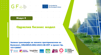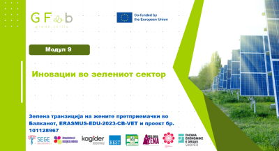 Modul 4 je trenerski vodič za „zeleno preduzetništvo“: profilira ciljnu publiku, uvodi principe zelene ekonomije, pokazuje kako razviti, voditi i prodati zelenu poslovnu ideju te je pretočiti u poslovni plan, uz set didaktičkih aktivnosti, studija slučaja i alata za evaluaciju i umrežavanje.