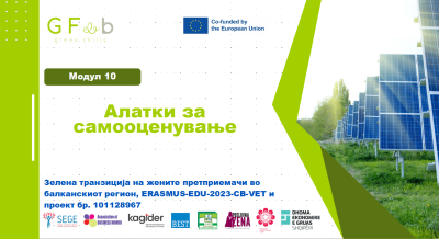 odul 5 uvodi samoprocjenu u kontekstu G-FEB obuke: razlike između samoprocjene, vršnjačke i eksterne evaluacije, praktične radionice, alati (dnevnici, kontrolne liste, ciljevi), rubrike i digitalna rješenja s fokusom na žene poduzetnice u zelenoj tranziciji.