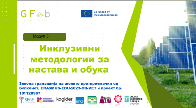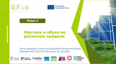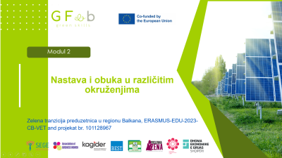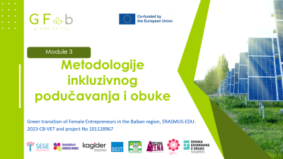 Ovaj modul obuke fokusira se na inkluzivne metodologije podučavanja i obuke za zelene vještine i kompetencije, s naglaskom na integraciju ekološke održivosti uz tradicionalna ekonomska i menadžerska učenja.