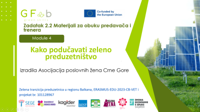 Ovaj modul obuke ima za cilj da osposobi učesnike sa znanjem i vještinama neophodnim za efikasno pružanje edukacije o zelenom preduzetništvu ženama u poslovanju i budućim generacijama poslovnih lidera.